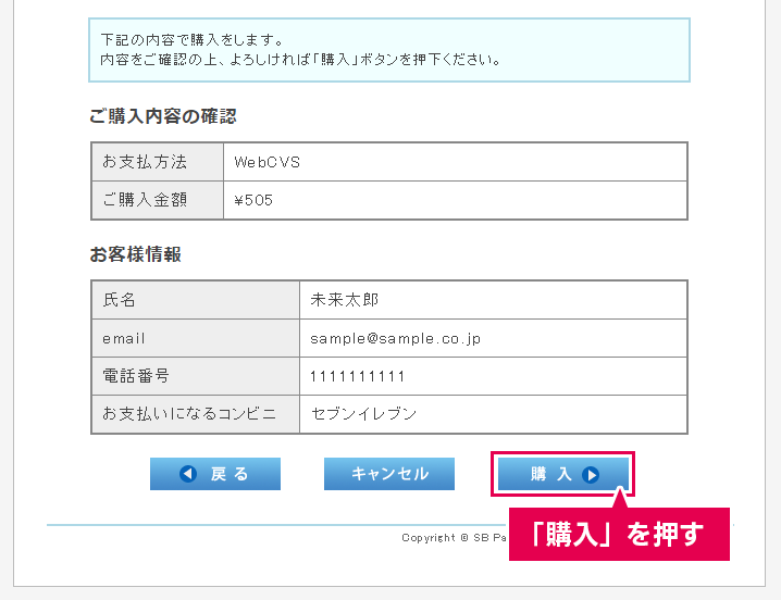 ・内容を確認し、「購入」を押してください。
