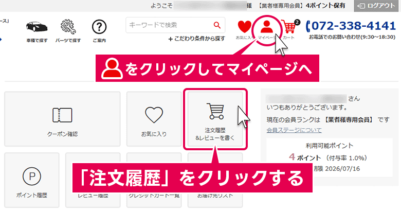 Web領収書は、マイページの注文履歴から何回でもダウンロード可能です。
