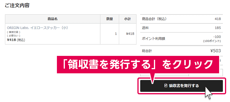商品が発送される前は、マイページに「領収書を発行する」ボタンが表示されません。