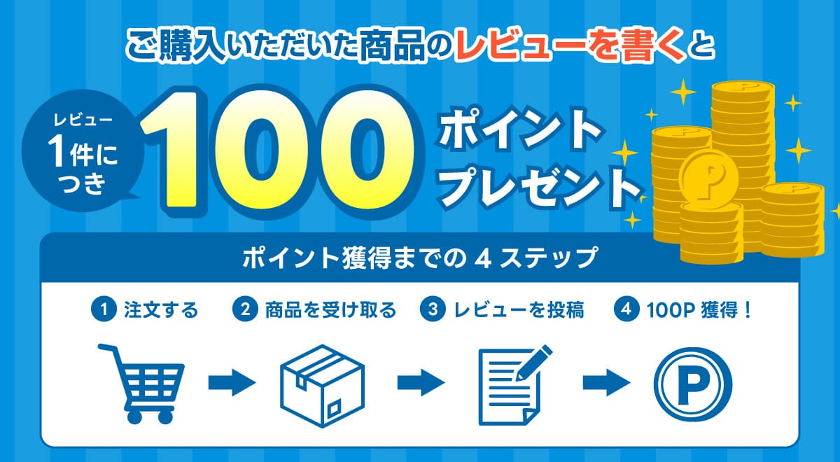 「レビューを投稿していただいたお客様全員に100ポイントプレゼント」キャンペーンをはじめました。